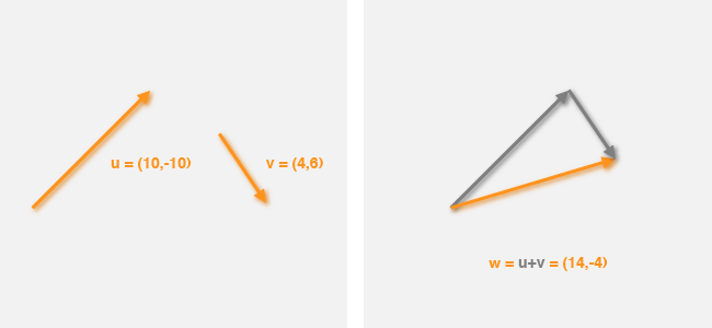 Um den Vektor w zu berechnen, welcher durch Addition von u und v zu erhalten ist, gilt folgendes Vorgehen:w = u + v