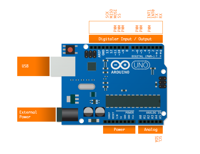 Der Standard unter den sehr verschiedenen Arduino Boards ist das Arduino UNO. Dieses Board ist sehr robust und für die meisten Anwendungen völlig ausreichend.