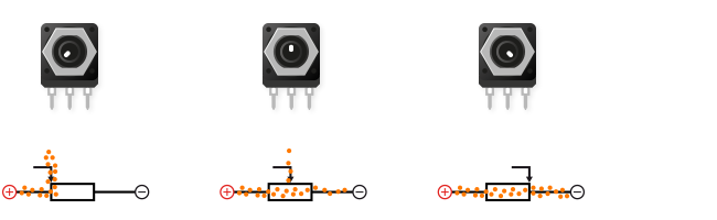 Das Potentiometer ist eine spezielle Form eines variablen Widerstandes, da es an sich schon als Spannungsteiler funktioniert. Das Potentiometer eignet sich dehalb auch sehr gut um eine schnelle analoge Eingabe zu generieren. Die Funktionsweise lässt sich folgendermassen verinfacht darstellen …