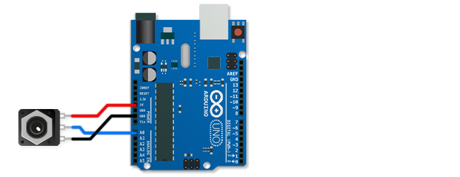 Um das Potentiometer am Arduino anzuschliessen verwenden wir folgende Schaltung…