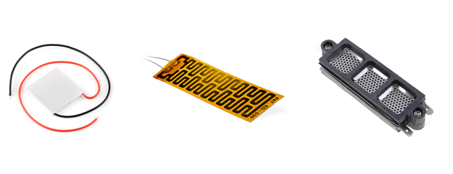 PTC heating elements are based on a ceramic material, which changes its resistance when a voltage is applied and converts it into heat. The advantage over heating foils is that when a limit temperature is reached, the resistance becomes almost infinite, so they do not require active control of the maximum temperature. Also here we use a transistor as switches and the elements with the Arduino to be able to control.
