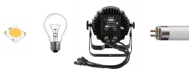 Incandescent lamps or bulbs are the classic light sources, which were first built by Thomas Edison in 1879. They are based on joule heating, whereby current running through a thin wire will heat up so much that it starts to glow. There are a variety of designs, sizes and luminosities. Also, incandescent lamps can be operated by both direct and alternating current. Incandescent lamps are extremely inefficient compared to LED lamps, but they have a certain aesthetic quality and produce heat as a by product which may be desirable in some cases. If we want to run a bulb on AC controlled by Arduino we use a relays as switches, if we want to run a DC bulb we can use transistors as switches.