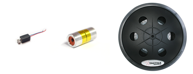 Haptuators generate very precise haptic feedback via two opposing solenoids. For small applications we use the models from Tactile Labs for larger applications we use the models from Clark Synthesis. The haptuators require an audio signal and should be driven by an appropriate amplifier.