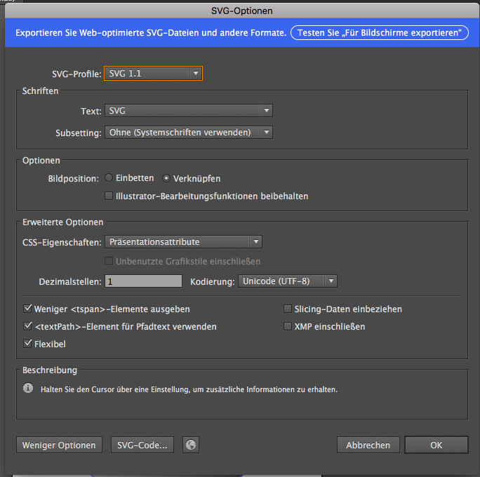 When exporting SVGs from illustrator, the following settings should produce working results. This does however depend on your version of illustrator.