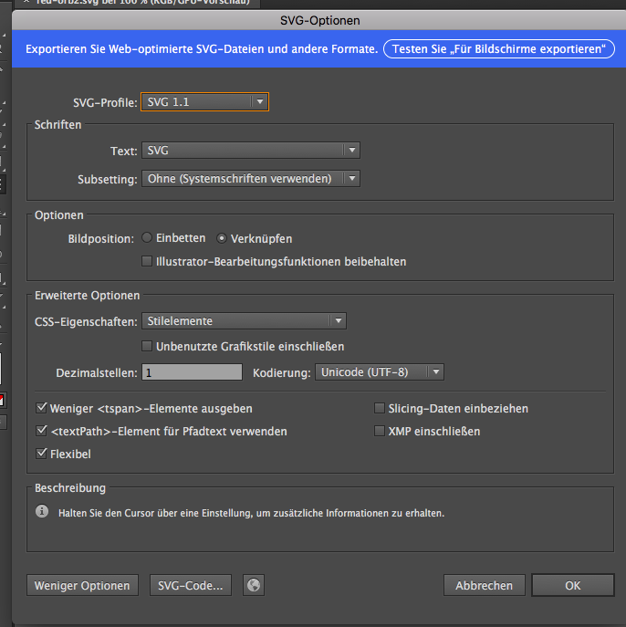 When exporting SVGs from illustrator, the following settings should produce working results. This does however depend on your version of illustrator.